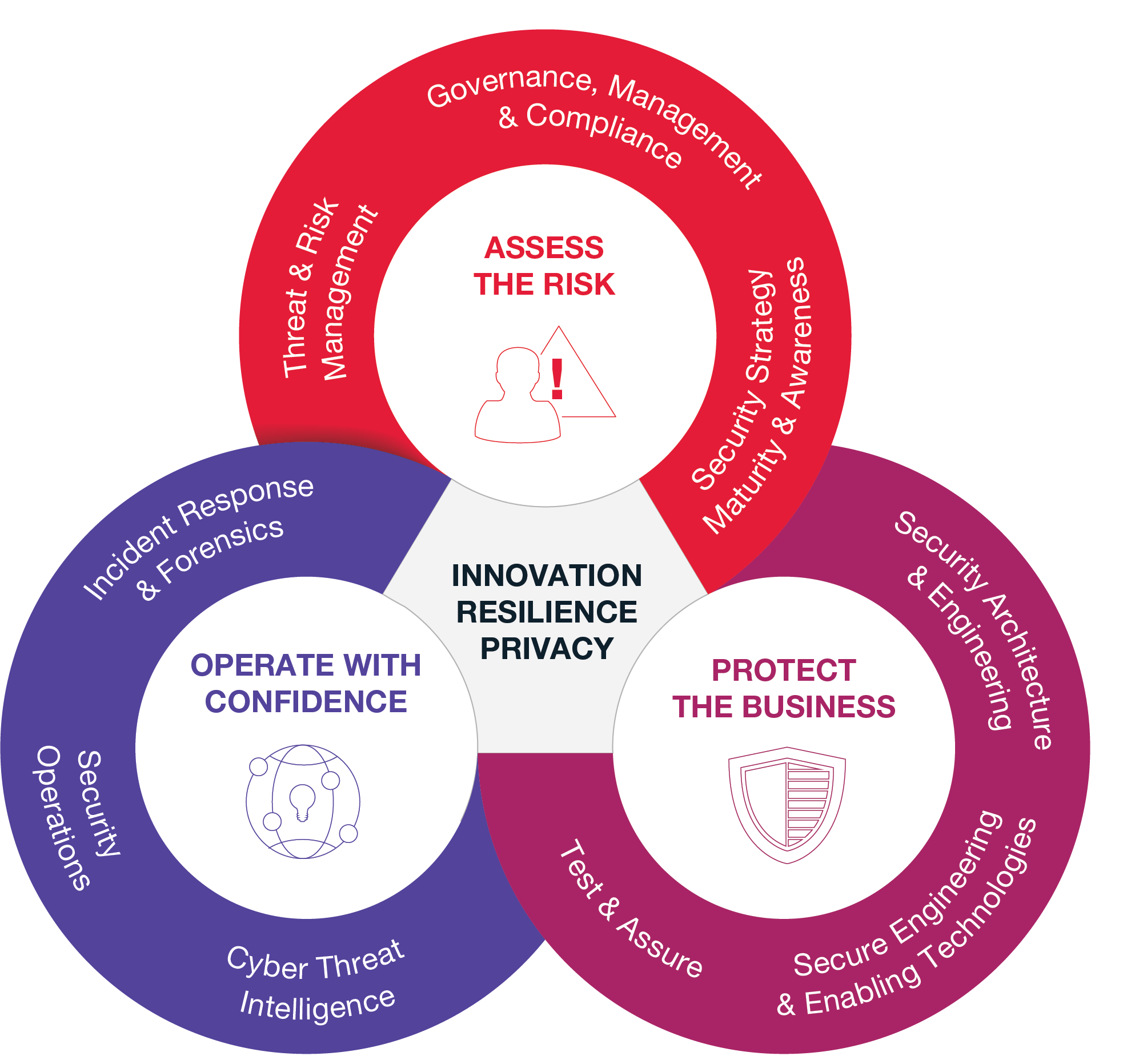 Our cyber security services operate in three integrated areas: