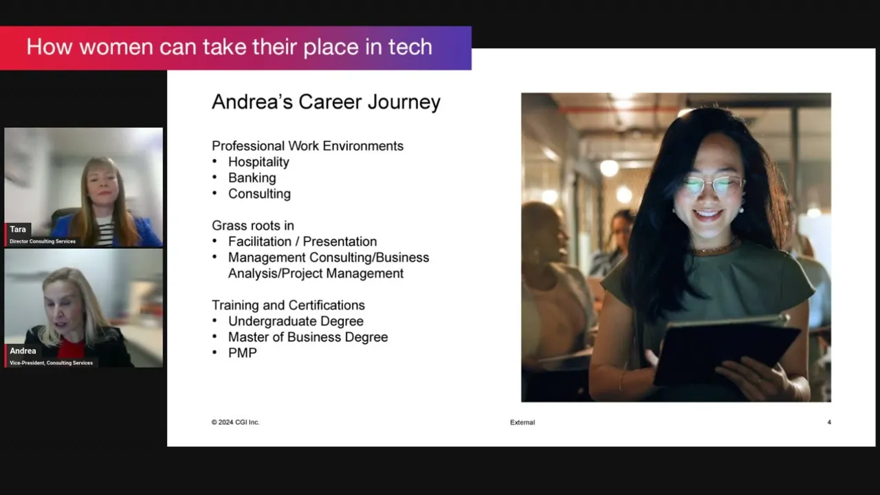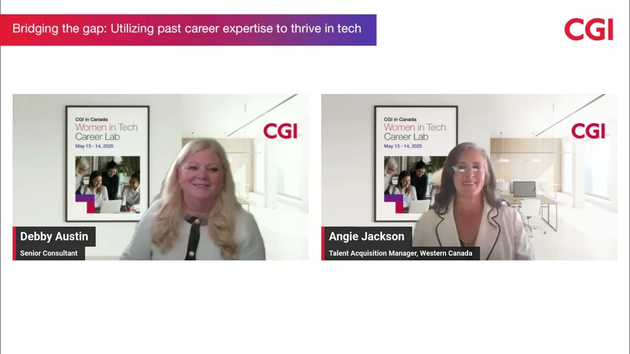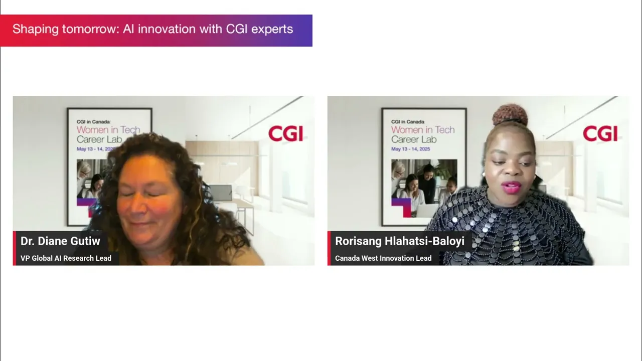 As part of the CGI Women in Tech Career Lab, join us for a must-attend session featuring two of CGI’s leading AI experts, Diane Gutiw, a member of the Government of Canada’s Advisory Council on AI and Rorisang Hlahatsi Baloyi, an innovation leader at CGI in Canada. In this dynamic conversation, we’ll explore how AI is transforming industries, creating new opportunities, and reshaping innovation. Our speakers will dive into key trends, ethical considerations, and real-world impacts, sharing fresh perspectives from the forefront of AI leadership. This is one of the highlights of the CGI Women in Tech Career Lab, a rare chance to hear directly from those helping shape the future of technology.