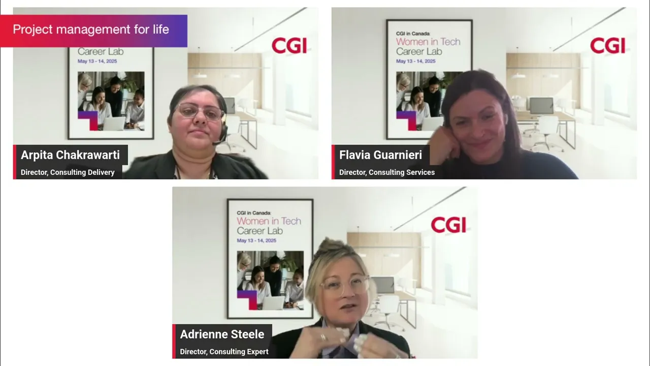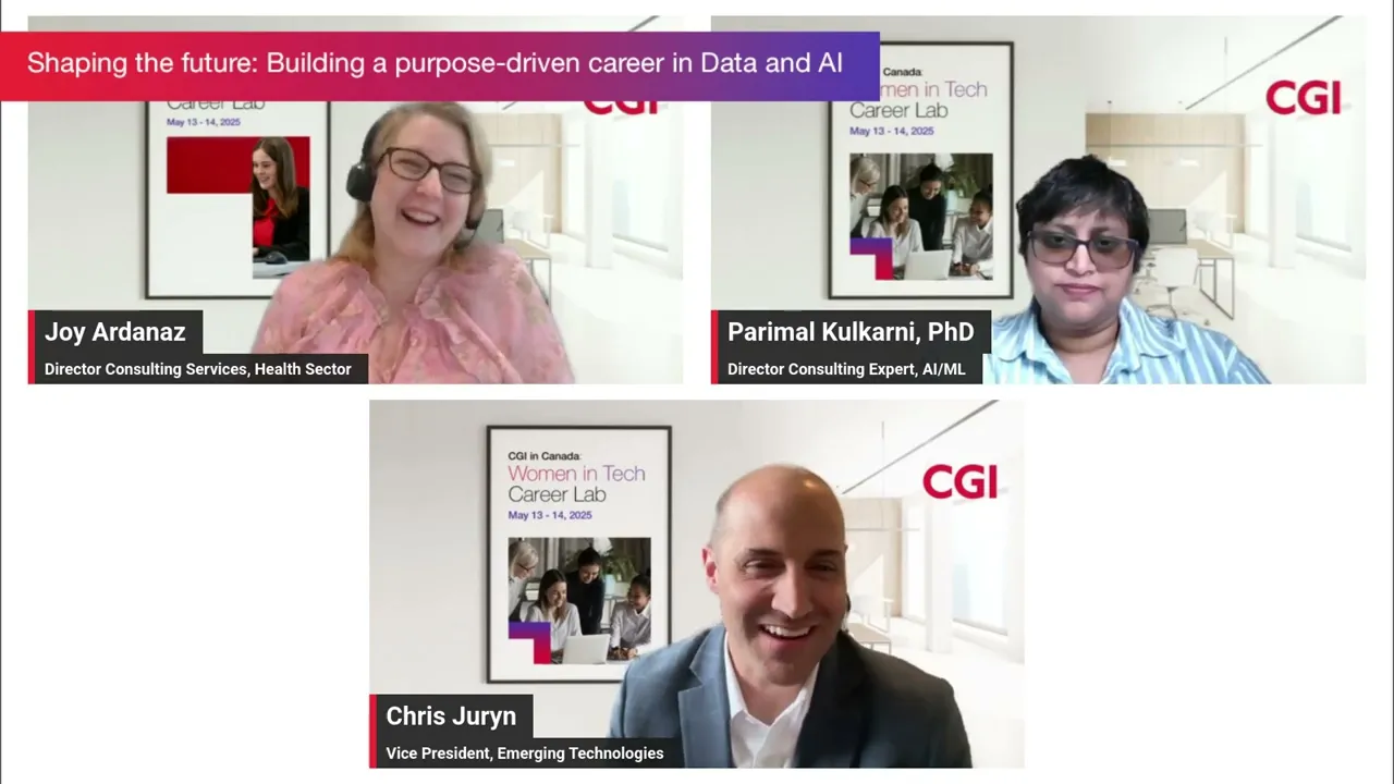 The session explored the world of business consulting at CGI through the experiences and insights of consulting leaders from across Canada. It provided an overview of CGI’s business consulting practice, including its national presence, service offerings, and areas of expertise, before diving into a candid discussion with the panelists. They shared their personal career journeys, the opportunities and challenges they see ahead, and what it means to build a meaningful consulting career at a company deeply rooted in technology and innovation. The panelists also reflected on the advice they would have given their younger selves, offering valuable insights for anyone navigating their own consulting path.