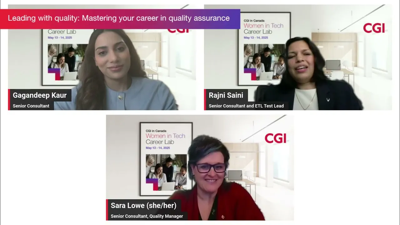 Quality practice in technology is about curiosity, problem-solving, and making great things even better. In this session, Sara Lowe, Rajni Saini and Gagandeep Kaur will share how they found their way into the field, what excites them about their work, and how their roles help shape the products people rely on every day. You’ll hear personal stories of growth, unexpected career pivots, and the unique satisfaction that comes with being the voice of quality on a team. This is a conversation about impact, advocacy, and how professionals in quality assurance and engineering bring both heart and rigor to the tech we trust. For anyone interested in breaking into quality assurance and engineering or exploring quality management, this session is your invitation to take a closer look.