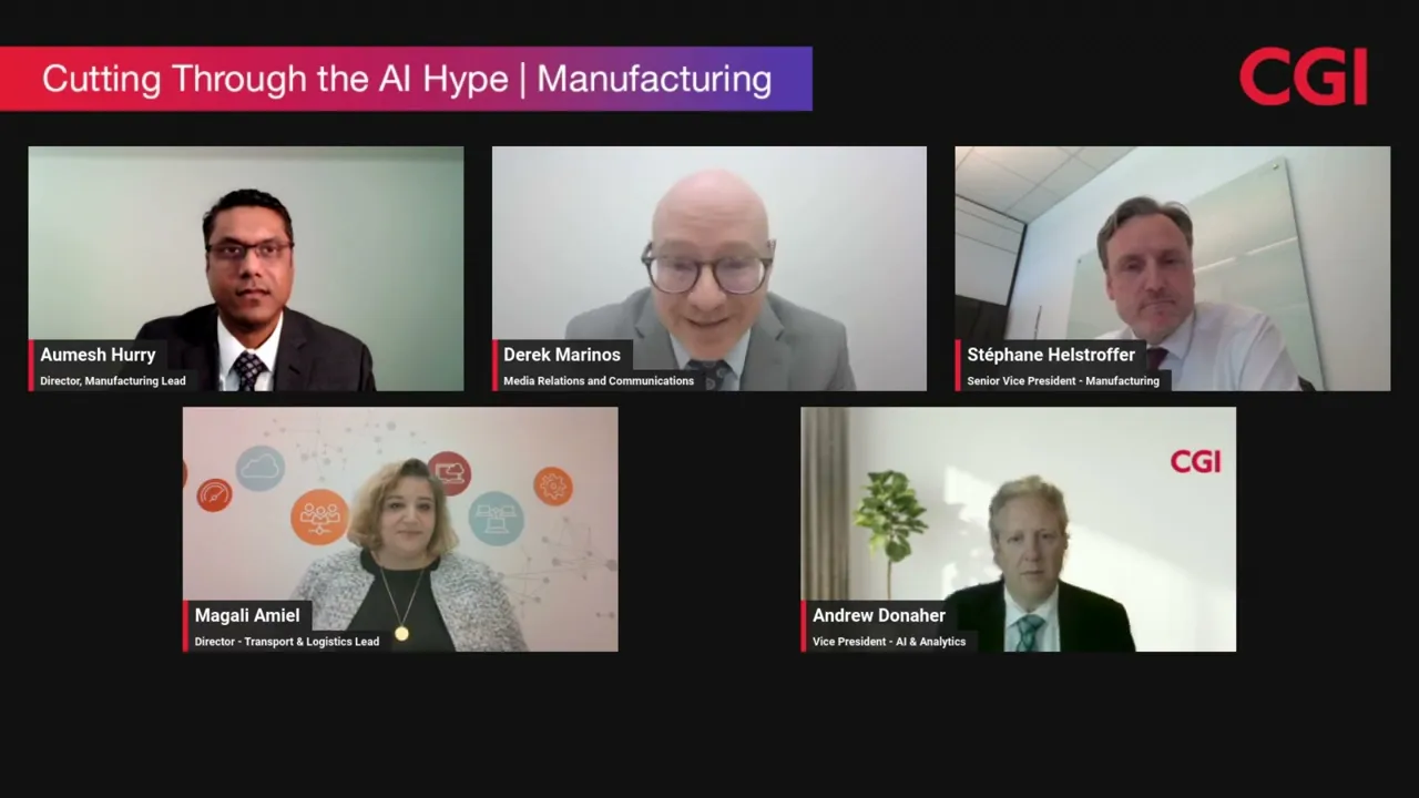 Nos experts de l'industrie et de la technologie, Stéphane Helstroffer, Aumesh Hurry, Magali Amiel, Andrew Donaher et Derek Marinos ont échangé leurs points de vue sur les tendances, les défis, les stratégies innovantes et les cas d'utilisation de l'IA qui façonnent l'industrie manufacturière.