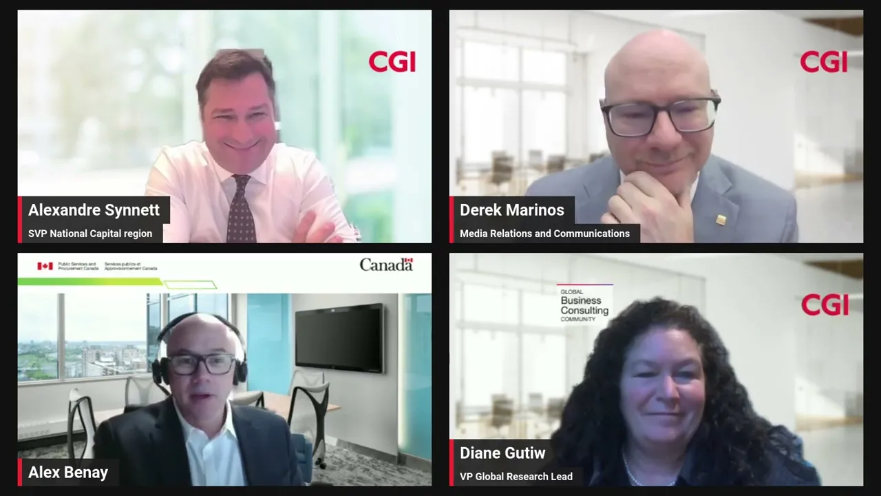 Lors de cette séance, les spécialistes de CGI, Diane Gutiw et Alex Synnett, ont discuté avec M. Alex Benay, sous-ministre délégué des Services publics et de l’approvisionnement (SPAC) et ancien chef de la direction informatique du Gouvernement du Canada. Ils ont parlé de la manière dont les leaders en numérique du secteur public saisissent les opportunités qui ont émergé des technologies novatrices des dix dernières années et comment ils relèvent les défis liés à l’adoption de l’IA.
