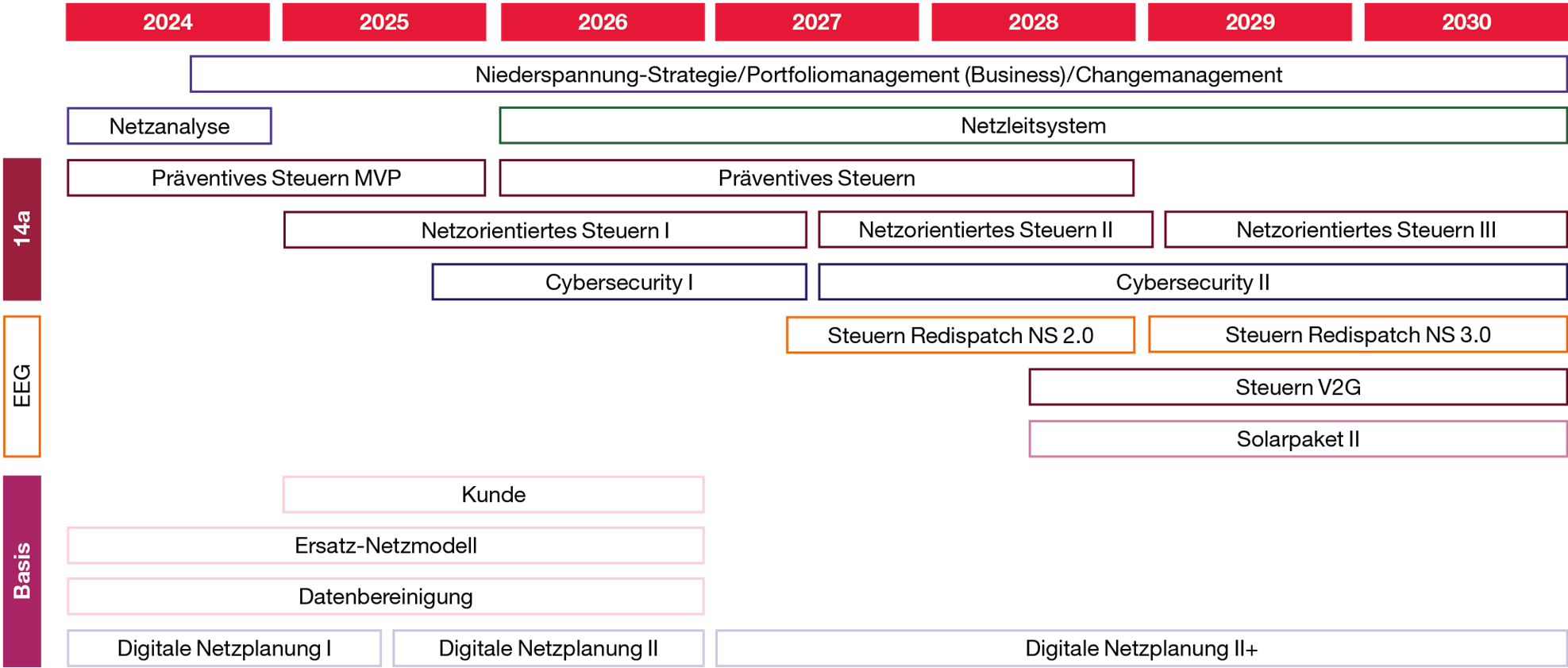 Hierfür ist die Entwicklung einer entsprechenden Strategie entscheidend. Sie muss nicht nur die aktuell gültigen gesetzlichen Regelungen wie den EnWG §14a und Redispatch 2.0 berücksichtigen, sondern auch die zu erwartenden und schon in Grundzügen bekannten Themen wie Vehicle-to-Grid, Energy Sharing sowie dynamische Tarife und Netzendgelte. Wichtig ist hierbei, die weiteren Pläne der Bundes- und Landesregierungen zur Energiewende im Blick zu behalten und die aktuell vorliegenden Referentenentwürfe zu berücksichtigen, die eine vollständige Steuerbarkeit des Verteilnetzes vorsehen.