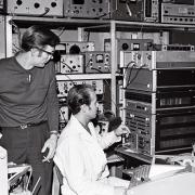 Fotol: Eesti NSV Teaduste Akadeemia Küberneetika Instituudi Spetsiaalse Konstrueerimisbüroo juhataja Jüri Puskar ja grupijuht Jaan Past Süsinik-13 tuumamagnetresonantsi uurimas. Foto on tehtud aastal 1972.