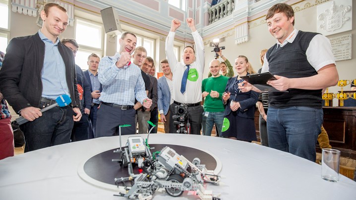 Reaalkoolis toimus “Robotlahing,” kus omavahel võtsid mõõtu õpilaste, poliitikute ja ettevõtjate ühismeeskonnad. Programmeerijate ja mehaanikute hulgas pani end proovile ka CGI Eesti tegevjuht Avo Kask.
