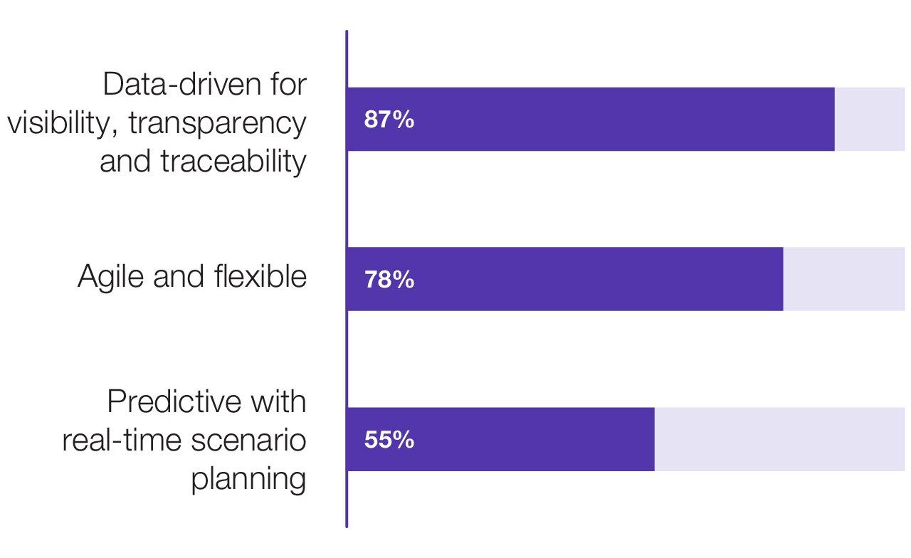 In addition to being able to trace and track, upcoming sustainability regulations demand greater insight into key metrics across the value chain. Data-driven organizations are better positioned to evolve their ecosystems to be more agile and flexible—two key qualities for navigating the extreme pressures of today’s VUCA landscape. This is also a prerequisite for transforming data into actionable insights through predictive analytics and real-time scenario planning. |