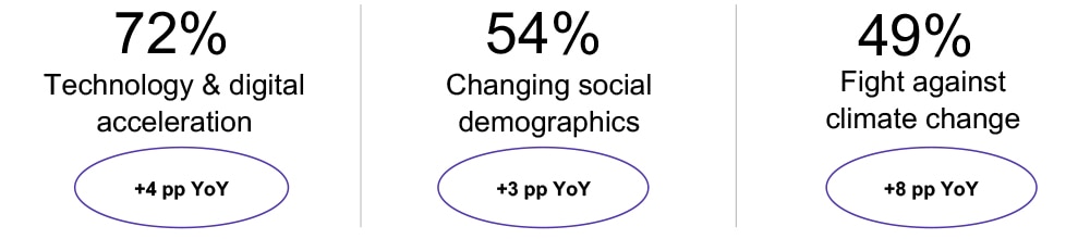 Figure 2: Executives citing high impacts of macro trends on their organization