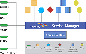 By leveraging a user-maintained configuration model, Tapestry Order Management simplifies the process and cuts the costs and time required to introduce new products to market. The order management solution is easily modified to accommodate your changing business needs and cuts across enterprise boundaries, enabling providers to jointly offer and seamlessly provision products with their partners.