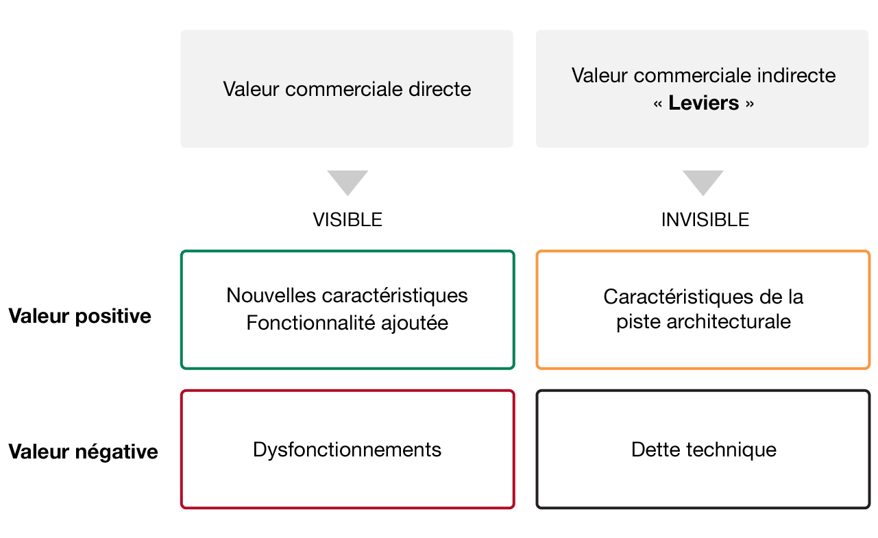 Un écueil commun est le fait que les partenaires d’affaires considèrent souvent les catalyseurs comme des atouts techniques desquels ils ne se sentent pas responsables, même si l’intégrité de leurs produits en dépend généralement (« Pourquoi ne payez-vous pas pour cela à l’aide de votre budget de maintenance? »). Nous avons abordé cet enjeu au sein d’une grande organisation de transport de passagers en présentant le modèle de raisonnement de Philippe Kruchten sur la valeur des tâches en attente. Ce modèle joue un rôle important dans les pratiques de soutien à la prestation de services de notre approche d’architecture centrée sur le risque et les coûts, et il contribue à rendre le développement de la valeur d’un portefeuille ou d’un produit plus transparent et à positionner les histoires architecturales en termes commerciaux. De plus, il sert de guide pour la répartition des capacités.