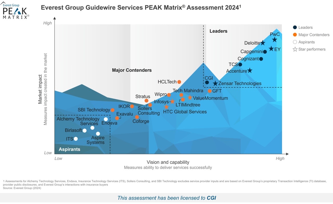 En reconnaissance de ces efforts, CGI a été nommée « Leader » dans l’évaluation 2024 PEAK MatrixMD de l’Everest Group pour les services Guidewire*.