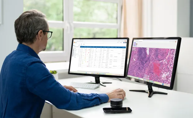 Les pathologistes et les techniciens de laboratoire seront en mesure de profiter d’une accessibilité, d’une efficacité et d’une collaboration accrues dans l’ensemble du processus de diagnostic, d’un nombre d’erreurs réduit, et d’une plus grande souplesse grâce à l’accès numérique aux données, ce qui leur permettra de travailler facilement à partir de différents endroits. Les pathologistes peuvent également utiliser les outils d’analyse des solutions et d’aide à la décision pour améliorer l’exactitude du diagnostic et le soutien au traitement, ce qui leur permet d’accorder plus de temps aux patients.