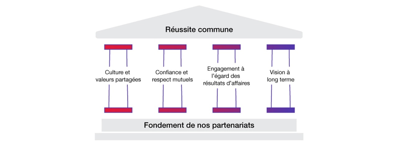 Ce graphique présente les éléments essentiels pour bâtir une relation de confiance qui garantit la réussite commune du client et du prestataire de services.