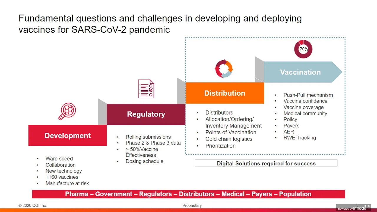 Description : L’enregistrement du webinaire de la Healthcare Information and Management Systems Society (HIMSS) du 10 novembre 2020* explore les facteurs de réussite essentiels du développement, du lancement et de l’administration d’un programme de vaccination contre la COVID-19 visant à protéger rapidement la population des États-Unis. La discussion a été menée par Rehana Wolfe, directrice-conseil experte chez CGI, et Lois Privor-Dumm, conseillère principale, Politiques et promotion de la vaccination et directrice des communications, Vaccins pour adultes à la Johns Hopkins Bloomberg School of Public Health. Voici les principaux sujets abordés :