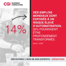 Apparition de nouveaux métiers, destruction d’emplois, guerre des talents, risques d’une société à deux vitesses… Coralie Pichot, Directrice Conduite du changement et Samuel Hassoun, Vice-Président Secteur RH au sein de CGI Business Consulting anticipent les bouleversements à venir sur le marché de l’emploi.