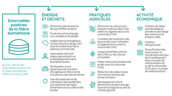 Ces nouveaux modèles nécessitent des efforts importants de pédagogie et de concertation sur le terrain mais c’est le prix à payer pour s’assurer d’une production et d’une consommation locales, à des prix soutenables pour tous. Le biométhane en est un exemple quasi archétypal. Forme d’écologie industrielle et territoriale, sa production contribue au développement du tissu économique local en générant de nombreuses externalités positives. Environnementales tout d’abord, puisque le biométhane offre un substitut moins carboné au gaz naturel, génère un digestat substituable aux engrais chimiques et permet le développement de solutions de mobilité durables (bioGNV). Economiques et sociales ensuite avec création d’emplois locaux (1 à 2 emplois en équivalent temps plein par site de production) et des compléments de revenus pour les agriculteurs.