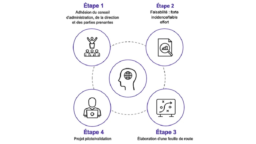 Ensuite, élaborez une feuille de route claire pour guider votre parcours. Par la suite, établissez les priorités, testez et validez. Tout au long du parcours, n’oubliez pas que le succès dépend de la qualité des données, de leur confidentialité et de leur sécurité ainsi que d’un cadre éthique.