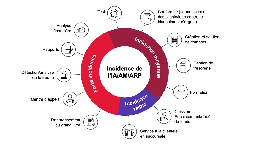 L’IA offre la possibilité de réorienter la main-d’œuvre sur des tâches plus complexes et plus difficiles, qui nécessite une compréhension plus approfondie des applications supplémentaires des outils d’IA afin d’accroître l’efficacité et d’améliorer l’expérience des clients. L’ampleur de l’impact à court terme variera en fonction de la zone opérationnelle.