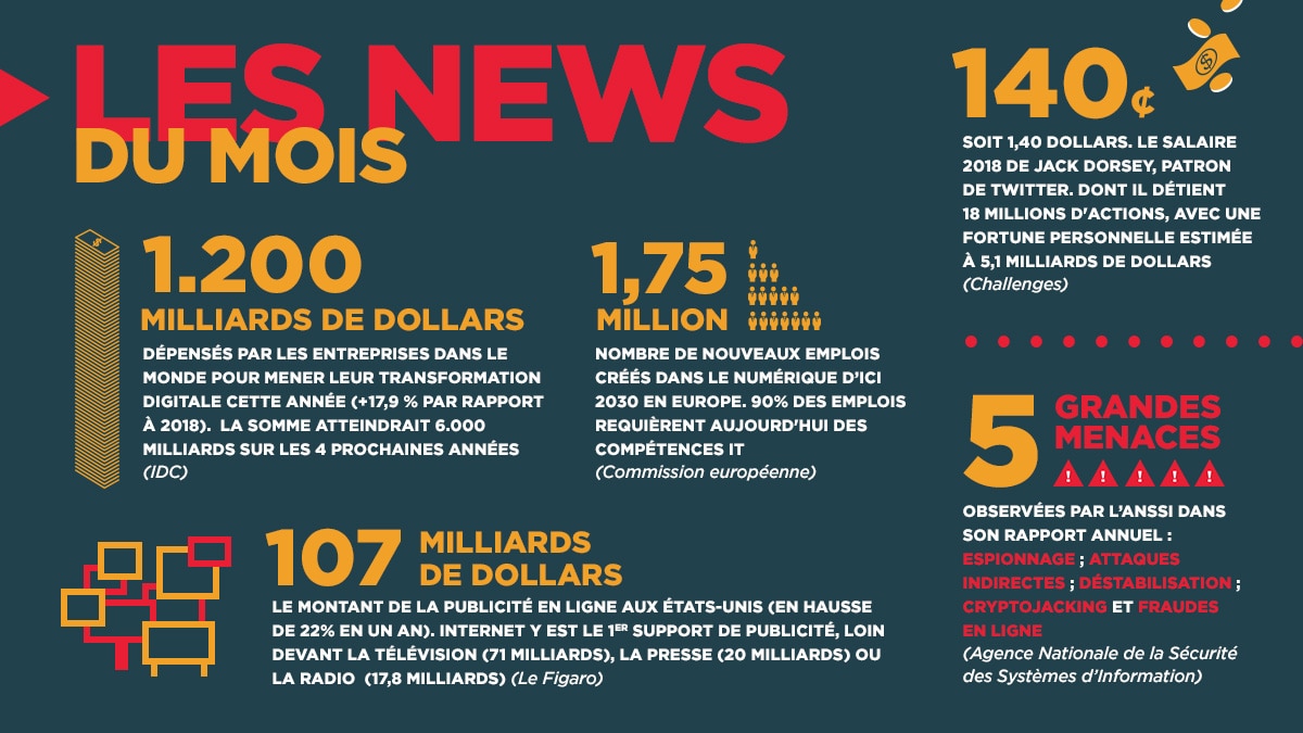 Dépenses des entreprises pour leur transformation digitale, de nouveaux emplois créés dans le numérique d'ici 2030, salaire du patron de Twitter...Découvrez les news du mois de juin !
