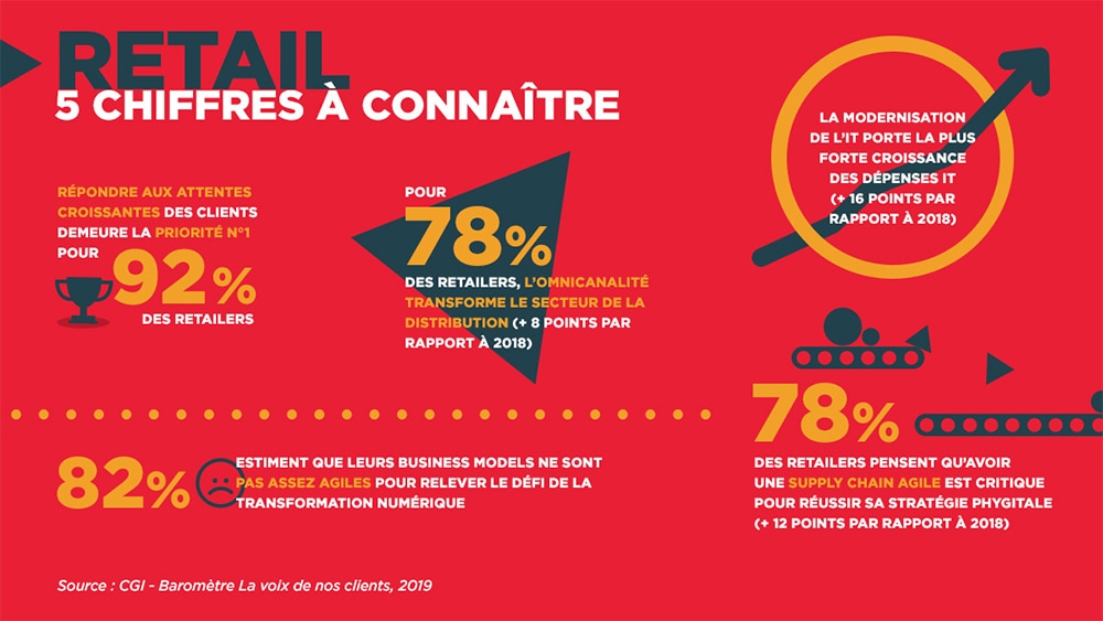 Expérience client, priorité n°1 des retailers, modernisation de l'IT....Découvrez les 5 chiffres à connaître du secteur RETAIL Partager le contenu sur : Facebook A PROPOS DE L'EXPERT CGI Voir le profil de l'expert
