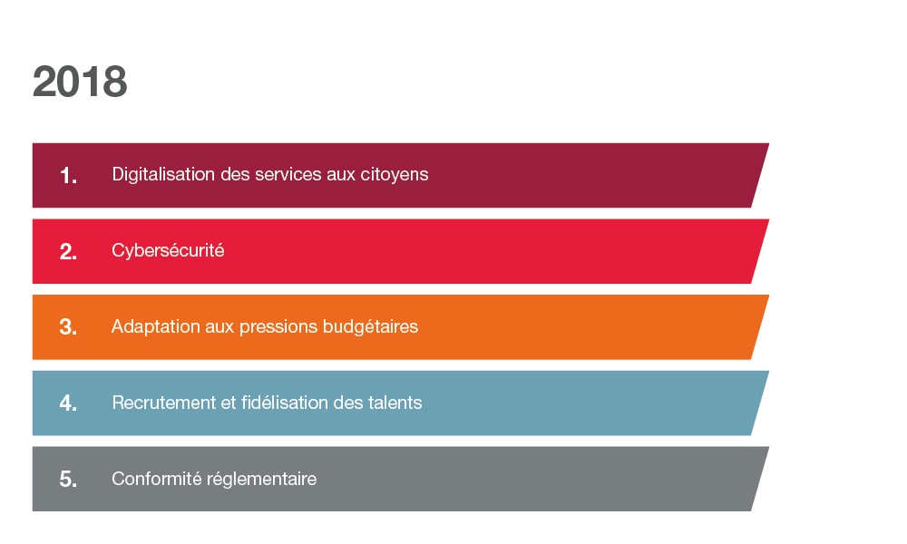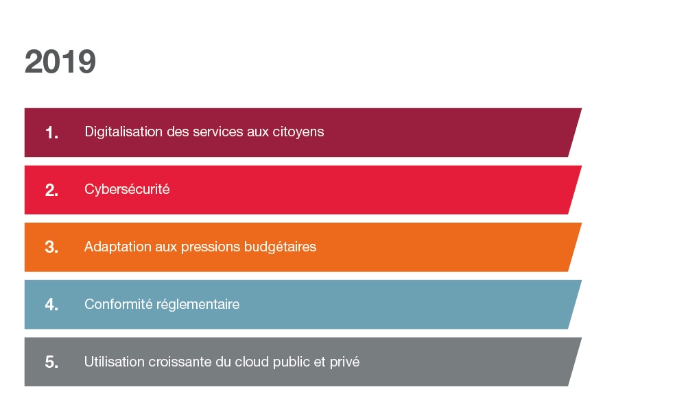 En 2019, nous avons réalisé des entretiens avec 152 cadres dirigeants travaillant au sein de collectivités territoriales. Pour eux, la nécessité de poursuivre la digitalisation des services aux citoyens et la modernisation IT constituent des priorités.