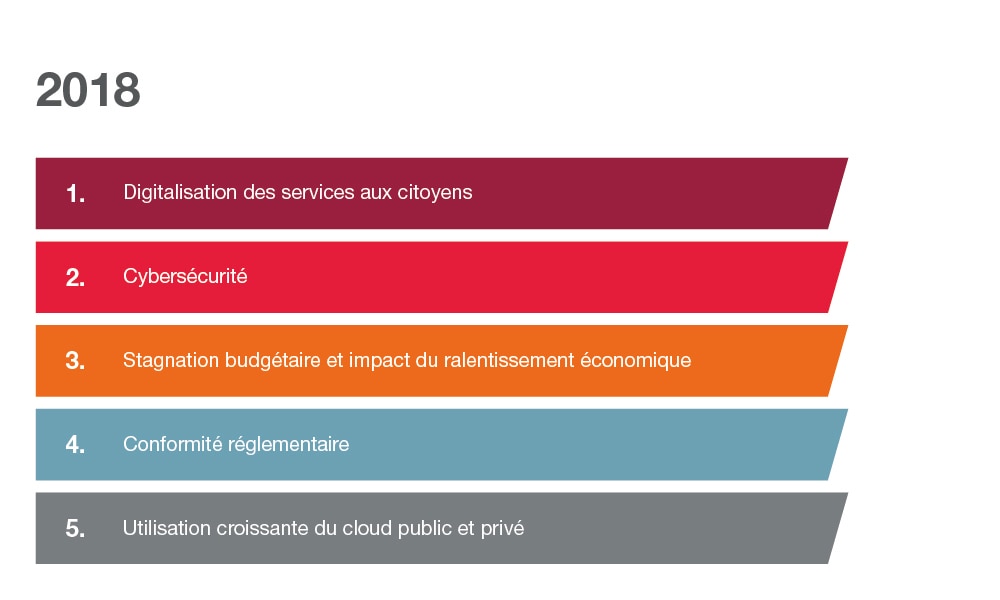La digitalisation pour répondre aux attentes croissantes des citoyens demeure la tendance clé cette année, suivie de la protection avec la cybersécurité qui se maintient en 2e position comme l’an dernier.