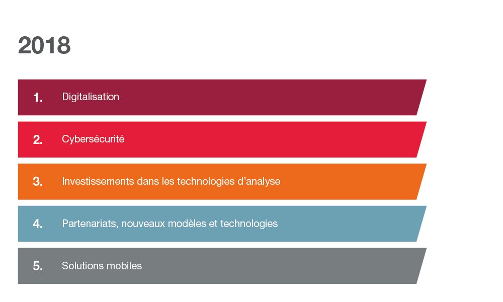 En 2019, nous avons réalisé des entretiens avec 70 dirigeants des secteurs du transport, des services postaux et de la logistique. Pour eux, la digitalisation , la protection grâce à la cybersécurité, l’optimisation des opérations et la modernisation des systèmes existants constituent des priorités.