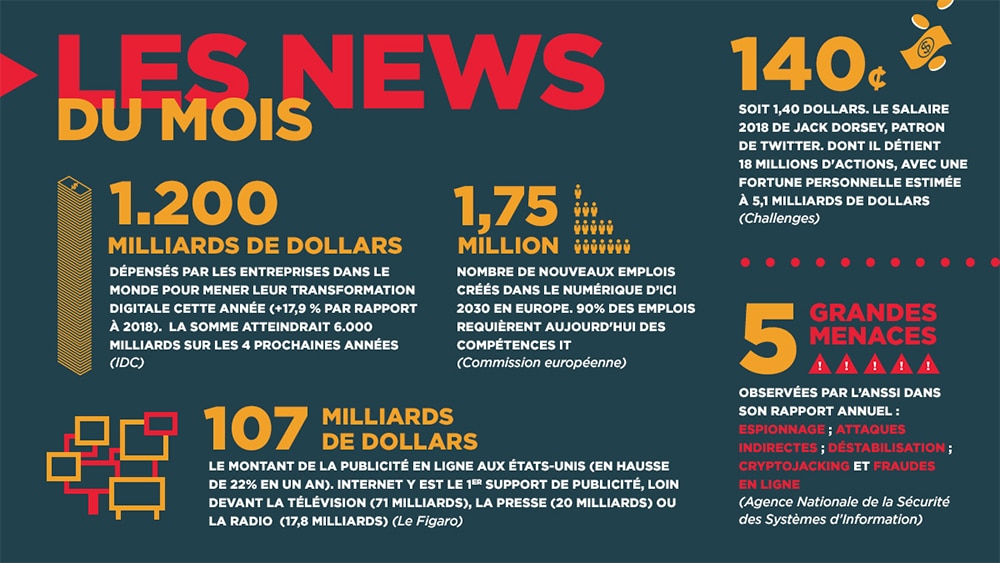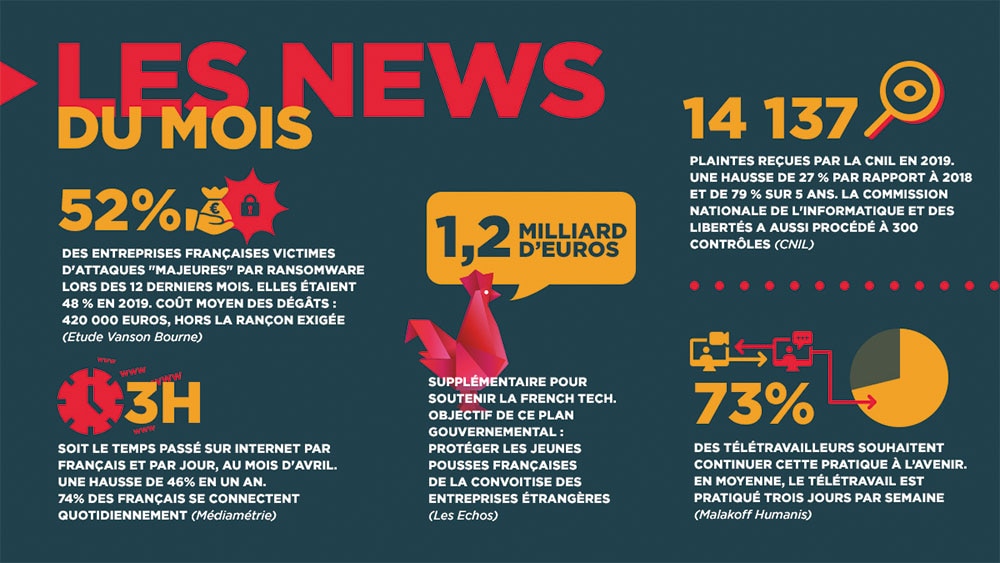Cyberattaques, télétravail, temps passé sur internet par jour, hausse de plaintes reçues par la CNIL en 2019. . . Découvrez les news du mois.