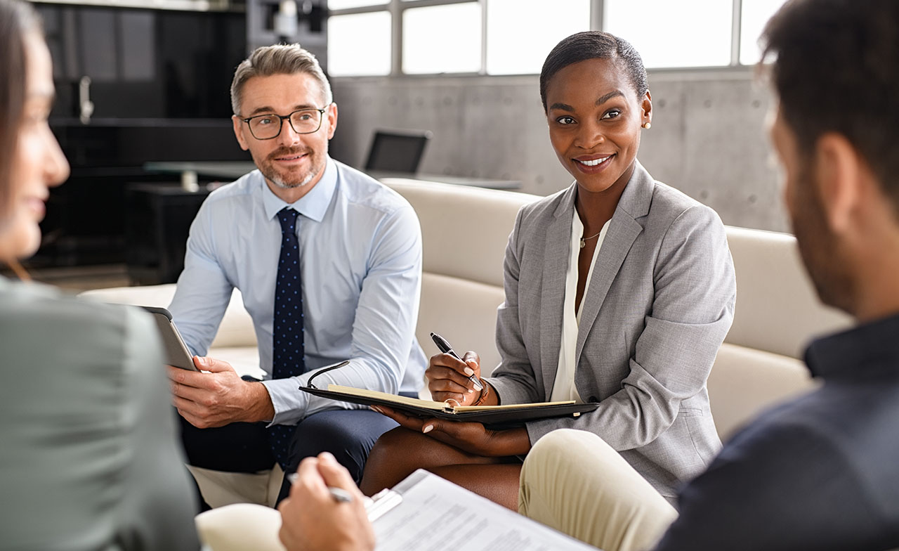 Professionnels ayant une discussion