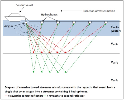 Når et seismisk signal sendes fra seismikkskipet, reflekteres lydbølgene i de ulike sediment- og havbunnlagene, og plukkes opp igjen av hydrofonene langs seismiske kabelen. Signalene som da plukkes opp avdekker informasjon om tetthet og dybde på de ulike lagene i havbunnen.