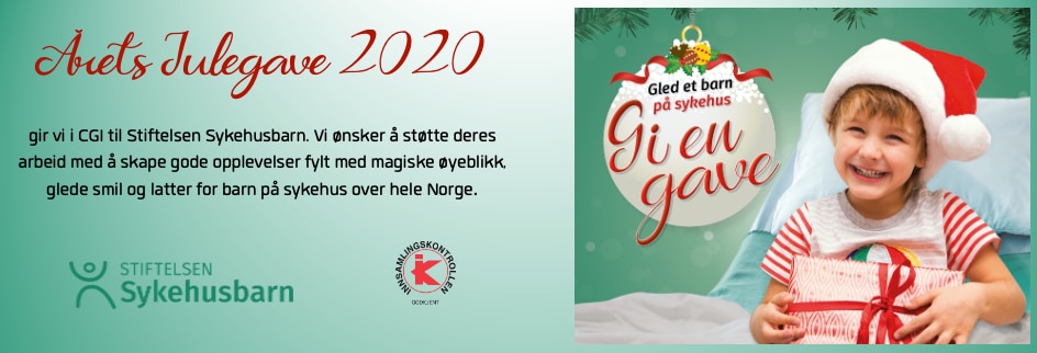 Dagens julegave går til Stiftelsen Sykehusbarn fra administrasjonsavdelingen i CGI. www.sykehusbarn.no