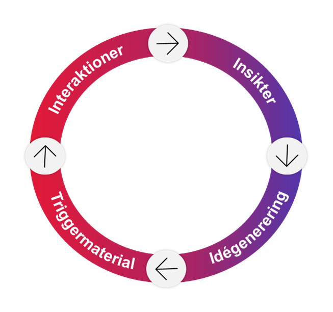 Med våra anskaffade insikter och vår definierade problemformulering är vi nu redo att komma på möjliga lösningar. Detta skede brukar vara mycket uppskattat eftersom det ger deltagarna möjlighet att tänka kreativt och nytt, något som det kanske inte finns utrymme för i deras dagliga uppgifter. Gruppen som arbetat ihop under projektets gång blir ofta oerhört målinriktad i jakten på att lösa en viktig utmaning tillsammans. I slutet av denna fas kan teamet prioritera vad som ska tas fram som prototyp.