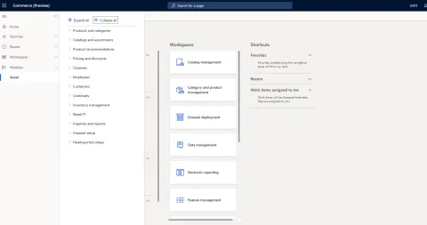 Commerce ses som en heltäckande e-handelslösning över flera kanaler inklusive back-office, butik och med ett grafiskt gränssnitt som skapar personliga upplevelser för kunder samtidigt som den optimerar driften.Applikationen innehåller allt för att bygga upp och driva en digital e-handel. Lösningen är ihopkopplad med ett CMS-verktyg och med Microsofts kassalösning Point of Sale (POS). I det separerade CMS-verktyget EMT (E-commerce management tool) finns inbyggda verktyg för webbredigering och webbutveckling med möjlighet att skapa intelligenta webbutiker. Med e-handelsplattformen får användare en smidigare hantering av innehåll, tillgångar, kampanjer, lager och priser i alla kanaler.
