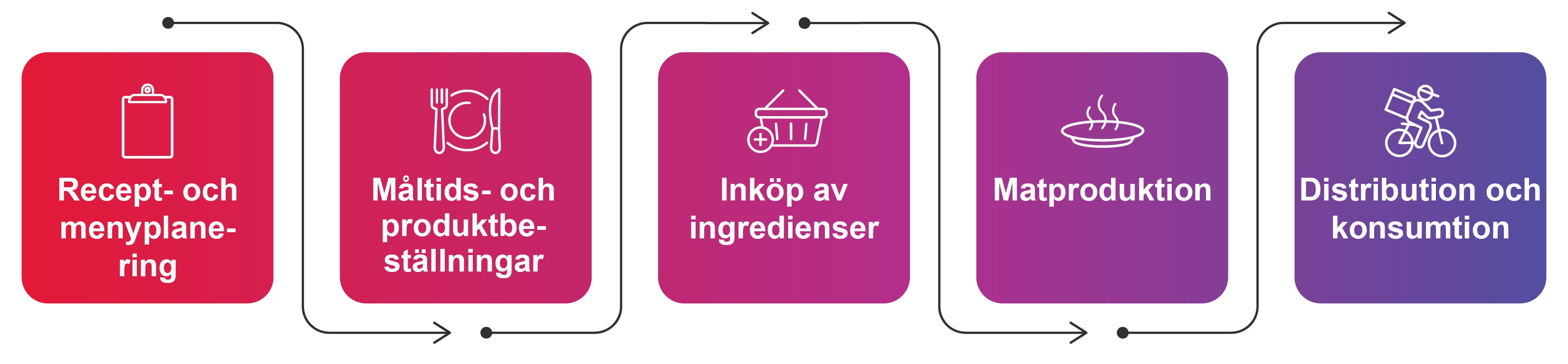 Recept och menyer tas fram med hjälp av exakta uppgifter om ingredienser, näringsinnehåll, allergier, säsong och kostnad, som uppdateras automatiskt från integrerade produktdatabanker. Med hjälp av dessa data utformas recept och menyer för att uppfylla specifika servicekriterier som näringsrekommendationer eller särskilda kostbehov, vilket minskar stressen med att hantera stora food service-portföljer.