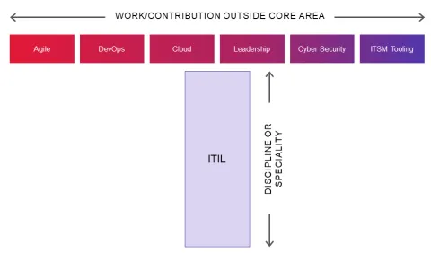 I am not alone in believing the modern service manager is now T-shaped! The downstroke of the T represents the core of a person’s service management expertise. The horizontal bar then highlights the whole host of skills that aid context and integration (in much less depth), including the likes of DevOps, cloud, project management, business change, sustainability, etc. No matter what these individual skills are, the ability to collaborate in an informed, effective manner with specialist colleagues in these areas is key.
