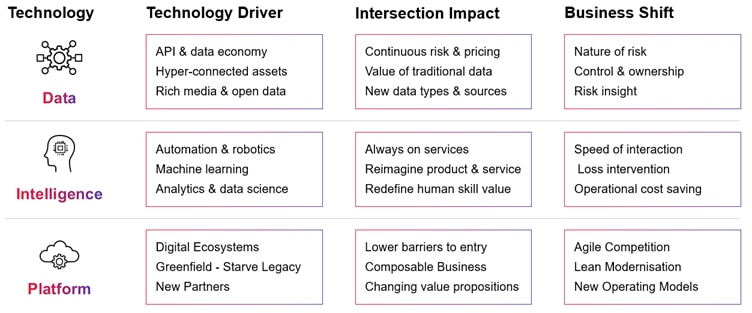 To succeed in making insurance ‘Fit for the Future’ we need to reduce the immediate burden of the current operating models, while also thinking beyond just using technology to automate what we do today to be more efficient. We need to think deeply on how we could adapt current operating models and products to take advantage of the technology intersection.
