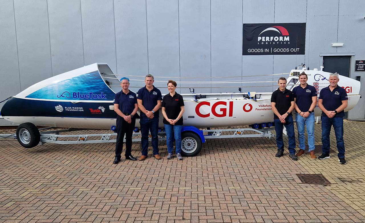 Figure 1: From left to right: David Tiplady (BlueTusk crew member), Chris Wood (BlueTusk crew member), Stefania Bortolotti (Marketing Business Partner, CGI UK), Ian Dunbar (Senior VP Consulting Services, CGI UK), Aaron Kneebone (BlueTusk crew member), Andrew Curtis (former BlueTusk crew member)
