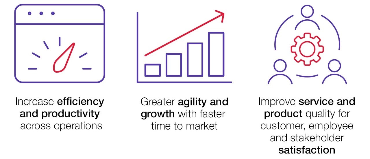 That’s because a digital backbone starts by aligning your strategy and organisational imperatives, then purposefully applying technology throughout your enterprise. This value-led approach to digitalisation creates an agile operating model that supports your desired outcomes:
