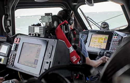 The RNLI Shannon Lifeboat is a world-leading Search and Rescue capability. We developed a platform management system that enables the craft to be operated at the very edge of its performance whilst protecting crew and maximising endurance. A crew of 6 operate this 14m platform from the safety of their shock-mitigating seating. Role-specific user interfaces enable each crew member to play their part, bringing together 500+ pieces of information from the boats’ 14 major sub-systems, including navigational situational awareness, operation of radio communications, switchboard, fuel system, cascading alarms and more. Platform data is stored to enable post-mission analysis and the predicted condition-based maintenance of the fleet.