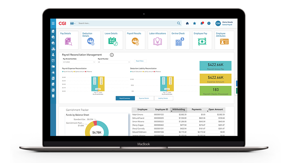 Automate your payroll processes from timesheets submission to paycheck distribution and labor allocation. Easily review payroll summary amounts and individual employee details with powerful, interactive dashboards. Increase accuracy and compliance with a modern solution built for public sector.