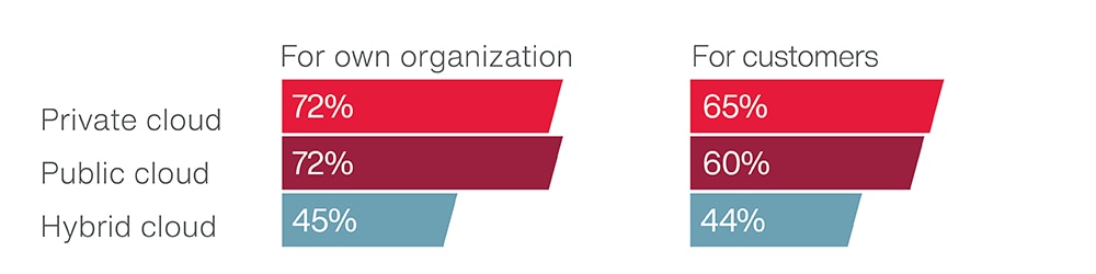 *Percentages represent "yes" answers. Executives can select multiple cloud usage types. "No" and "other" answers are not shown.